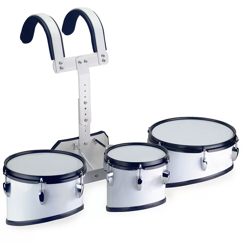 Cox üçlü bando tom seti, 10" - 12" ve 13" olmak üzere 3 adet Tom ve taşırken çalmayı kolaylaştıran, omuz destekli taşıma aparatına (carrier) sahiptir.