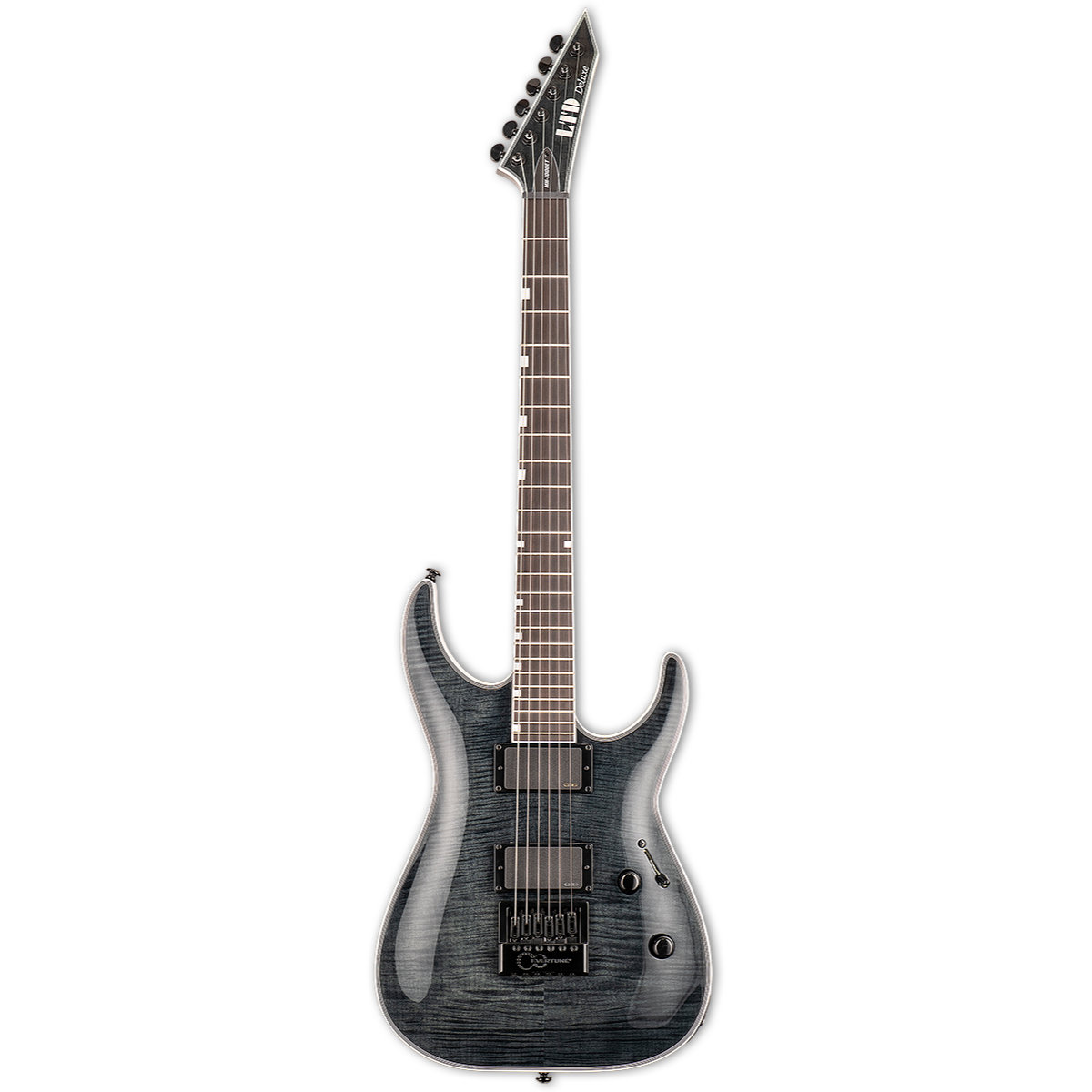 Müzisyenler için tasarlanan LTD Deluxe Serisinin bir parçası olan LTD MH-1000 EverTune, size beklediğinizden fazlasını verir. Set-thru sap yapısı sunar ve pürüzsüz bir şekilde üst perdelere benzersiz erişim sağlar. Figürlü ahşap damarların harika görünümünü vurgulayan See Thru Black kaplamalı flamed akçaağaç üst kapaklı maun bir gövdeye sahiptir. Ayrıca, üç parçalı ekstra ince U şeklinde akçaağaç sapa ve 24 ekstra jumbo perdeli abanoz klavyeye sahiptir. Çoklu beyaz lining ve Grover burgular gibi birinci sınıf donanımlara sahiptir. Ancak MH-1000 EverTune, klasik tonlardan agresif tonlara kadar değişen ihtiyaçlar için aktif EMG 85 (sap) ve EMG 81 (köprü) manyetiğinin dahil edilmesiyle işleri bir adım öteye taşımaktadır. Son olarak, EverTune köprüsü, neredeyse her koşulda gitarınızın mükemmel akortta kalmasını ve klavyenin her noktasında inanılmaz derecede doğru tonlamaya sahip olmasını sağlar.