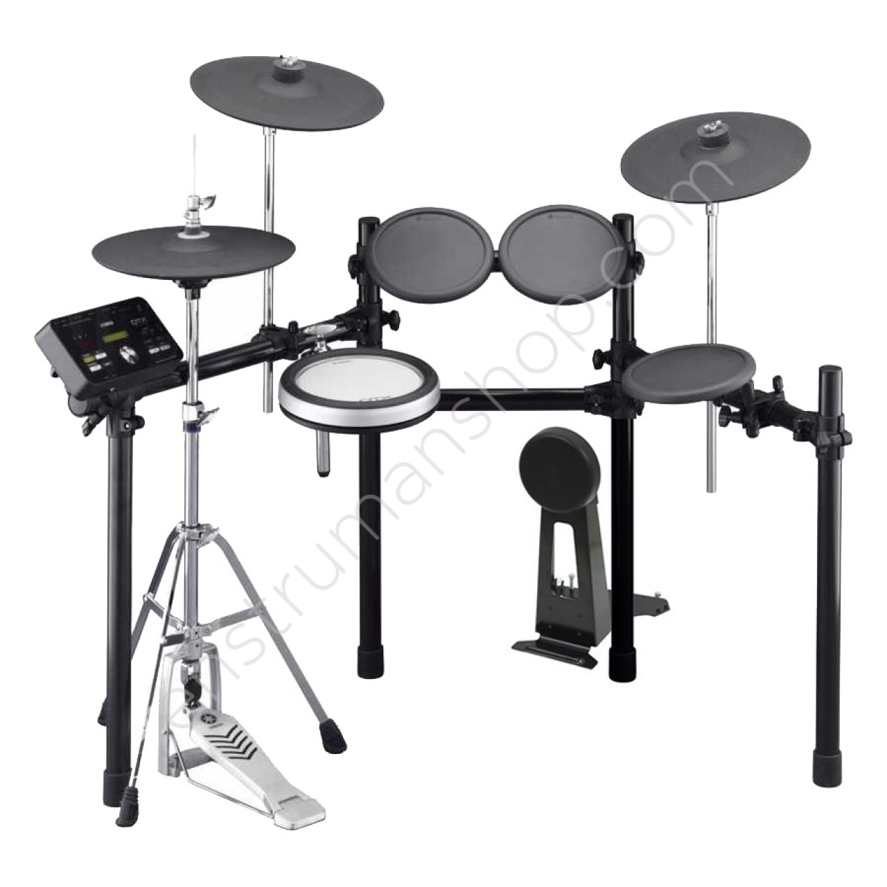 3 x tom, 1 x trampet, 2 x zil, 1 x hi-hat, bateri modülü, hi-hat standı ve raf sistemi içeren elektronik bateri kiti